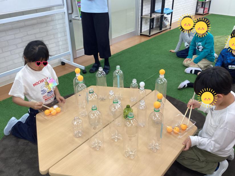 小さくてツルツルのピンポン玉をお箸で掴んだり、カップinビンゴをしたりして盛りあがりました。